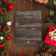 The backdrop features a rustic wood texture, creating a cosy and inviting atmosphere that evokes the charm of a country Christmas. At the top of the card, twinkling Christmas lights add a festive sparkle, enhancing the overall holiday spirit.