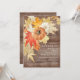 Beautiful fall birthday party invitation featuring watercolor leaves & pumpkins with a coordinating wood back.