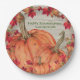 Rustic Wood Autumn Orange Pumpkins Fall Leaves paper plates. personalised | Happy Thanksgiving