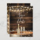 Rustic Wood Barrel Lights Champagne Save the Date Announcement Postcard