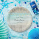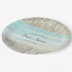 These rustic coastal themed bridal shower paper plates feature weathered wood with a scene of ocean waves crashing against the beach in the background, accented with string lights at the top.