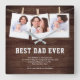 Rustic Wood Best Dad Ever 3 Photo Collage Square Wall Clock