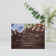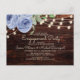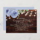 Rustic dark brown wood engagement party invitation postcard with periwinkle blue watercolor floral and twinkling string lights. Contact us for help with customisation or matching products.