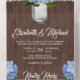 Rustic Wood Blue Hydrangea Mason Jar Wedding All In One Invitation