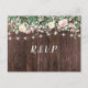 Rustic Wood Blush Floral Lights wedding rsvp Invitation Postcard