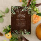 Create the perfect bridal shower invitation with this design featuring watercolor eucalyptus and fern botanical greenery and string lights, on a barn wood background. Copyright Elegant Invites, all rights reserved.