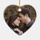 Rustic Wood Burgundy Floral Newlywed Photo Ceramic Ornament