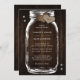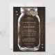 Rustic Wood Burlap Hearts Mason Jar Wedding Invitation