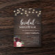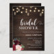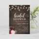 Boho rustic bridal shower invitation features marsala and blush pink flowers on a wood background.