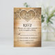Original and modern country or western wedding themes RSVP with wooden love heart carving and classy typography.