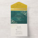 Rustic Wood Emerald Green and Yellow Wedding All In One Invitation