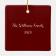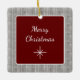 Rustic Christmas Family ornament, with a wood image and a deep red background. With white typography, you can customise this item with your own text. A simple addition to your festive holiday tree.