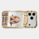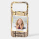 This phone case is adorned with a placeholder photograph and template text. Replace the square image with your favourite pet or person photo. Fill in the text field with a name or initials, remove the text or click customise to select a font style, size, and colour you prefer.