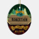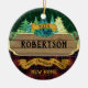 Personalise this ornament with your own family name or that of a friend, for a keepsake ornament or housewarming gift. The rustic wood design features plaid and pine trees, for a classic country woodland ornament.