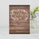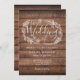 A rustic wedding invitation featuring a delicate hand-drawn rustic floral garland of botanical leaf foliage with stylish script typography, on a rustic wood background. Personalise with your special wedding day information. Designed by Thisisnotme©