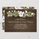 Vintage rustic rehearsal dinner invitation with peonies, dogwood flowers accompany anemones in a garden style bouquet. Nice old wood background texture. Perfect invite for rustic country barn rehearsal dinner. Full of white flowers invitation backside.