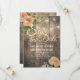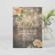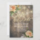 Save The Date Wedding Invitation Card Templates - Faux Gold Foil Script with Peach White Roses Floral and String Lights on Rustic Wood Background.
