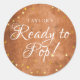 Rustic Wood Gold Hearts Ready to Pop Classic Round Sticker