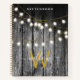 Rustic Wood Gold String Lights Monogram Sketchbook Notebook