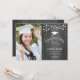 Rustic graduation party invitation with your photo. Features gray wood pattern, string fairy lights, script font and a tassel cap.