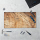 A rustic modern style wood grain desk mat. Earthy style in light and dark browns.