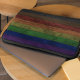 Rustic and dark, this neoprene laptop case is stunning and represents all the colours of the Philadelphia Pride Flag. With alternating stripes in a faux wood grain pattern, all the colours of the Rainbow Pride flag are represented as well as two additional colours (black and brown) to represent Queer People of Colour. This would be a nice gift for an ally, friend or member of the Queer Community. This is available in three sizes: 10", 13" and 15". The sleeve is black on the back side.