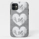 Rustic wood grain Phone case | faded love monogram. Distressed look wood panel design with white monogrammed love heart. Girly vintage gift idea for women. Add your own word, name or initials. Custom grey colours.