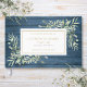 A rustic personalised celebration of life, funeral guest book featuring greenery on a blue wood panels background. Designed by Thisisnotme©