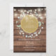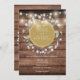 A pretty decorative rustic laurel garland encircles a faux gold foil border containing the happy couple's names on a rustic wood background. Below, your wedding details are set in classic elegant typography. The reverse features the married couple's names set within a matching rustic floral and faux gold foil garland on a rustic wood background. Designed by Thisisnotme©