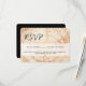 While working with a client who preferred to only received RSVPs through emails or phone, she requested an RSVP card that specified the number of guests and had her contact information. This version skips the step of needing to mail back the card and providing a return self-addressed envelope and stamp. It allows you to include the number of guests, customise the due date and direct guests to your wedding website or email (edit as needed). This design features a wood grain tree bark ring for a rustic feel.