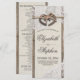 Rustic Country Style Wedding Program Rack Cards Templates - Old Horseshoes Couple with Rope Bow Knot and White Lace, Burlap Cloth on Old Barn Wood Background.