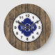 Rustic Wood L Planks #1 Navy Quatrefoil 3 M'gram Large Clock