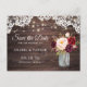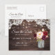 Rustic Wood Lace Burgundy Mason Jar Save the Date Announcement Postcard