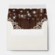 Budget Rustic Wood and String Lights Lace Wedding Envelopes featuring a rustic wood background with twinkling strings of lights and vintage style lace in the bottom corners. These go perfectly with our Budget Rustic Wedding Invitations!