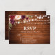 Rustic Wood Lights Watercolor Burgundy Floral Wedding RSVP Card