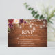 Rustic Wood Lights Mason Jars Watercolor Burgundy Marsala Floral Wedding RSVP Card