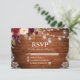 Rustic Wedding Wood String Lights Mason Jars Lace Watercolor Burgundy Marsala Floral RSVP Card