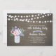 Celebrate your special day with this stylish birthday invitation. This design features string lights, mason jar & flower bouquet with a wood background. You can customise the text to any age or events.