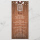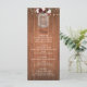 This rustic country wood floral boho wedding menu card features a dark brown wood background, string lights on top, and the names of the bride and groom in a mason jar decorated with a burgundy and blush watercolor bouquet. Provide your guests with menu option by changing the text easily with the templates.