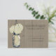 WEDDING RESPONSE CARD: Perfect for a country style wedding or maybe you just love Mason Jars! Navy Blue Mason Jar hanging on a hook filled with hydrangeas. A Rustic Brown Barn Wood Background with the hanging Mason Jar and ivory hydrangea flowers. If you have any questions on this design or want a colour change please email me paula@labellarue.com Also check for the WEDDING INVITATION, RECEPTION and GUEST SEATING Cards to match!