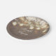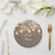 Rustic country barn wood wedding paper plates with mason jar, string lights, and lace