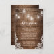 Rustic Wood Mason Jar String Lights Lace Reception Invitation