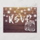 Rustic Wood & Mason Jar String Lights Wedding RSVP Invitation Postcard