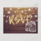 Rustic Wood & Mason Jar String Lights Wedding RSVP Invitation Postcard