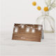 This rustic wedding place card features a rustic barn wood background with glowing mason jars and string lights; perfect for an outdoor or rustic themed wedding or event.