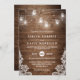 Rustic Wood Mason Jars String Lights Lace Wedding Invitation