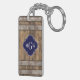 Rustic Wood Metal Band Navy Quatrefoil 3 Monogram Key Ring