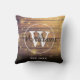 Rustic Wood Monogram Elegant Script Cushion