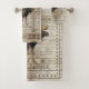 Rustic wood walking moose family name towel set for your cabin, cottage, camper, bed and breakfast, tiny house. Customise it for your needs. Earthy rustic wood pattern with simulated nail edging design, giving this style an authentic natural nail edged wood barrel vibe.