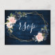 Rustic Wood Navy Blue Blush Pink Geometric RSVP Postcard